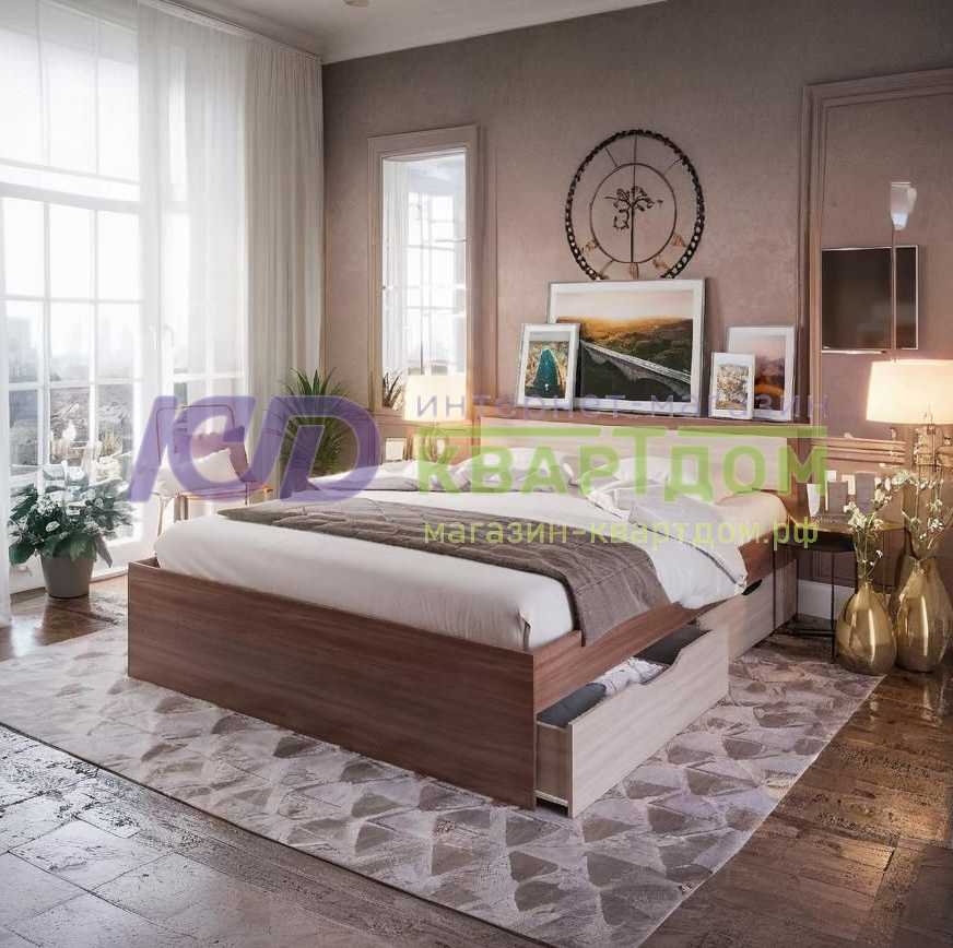 Кровать 1,4 Фиеста КР605(Гармония) с ящиками (Венге, Белфорд)(2 кор)