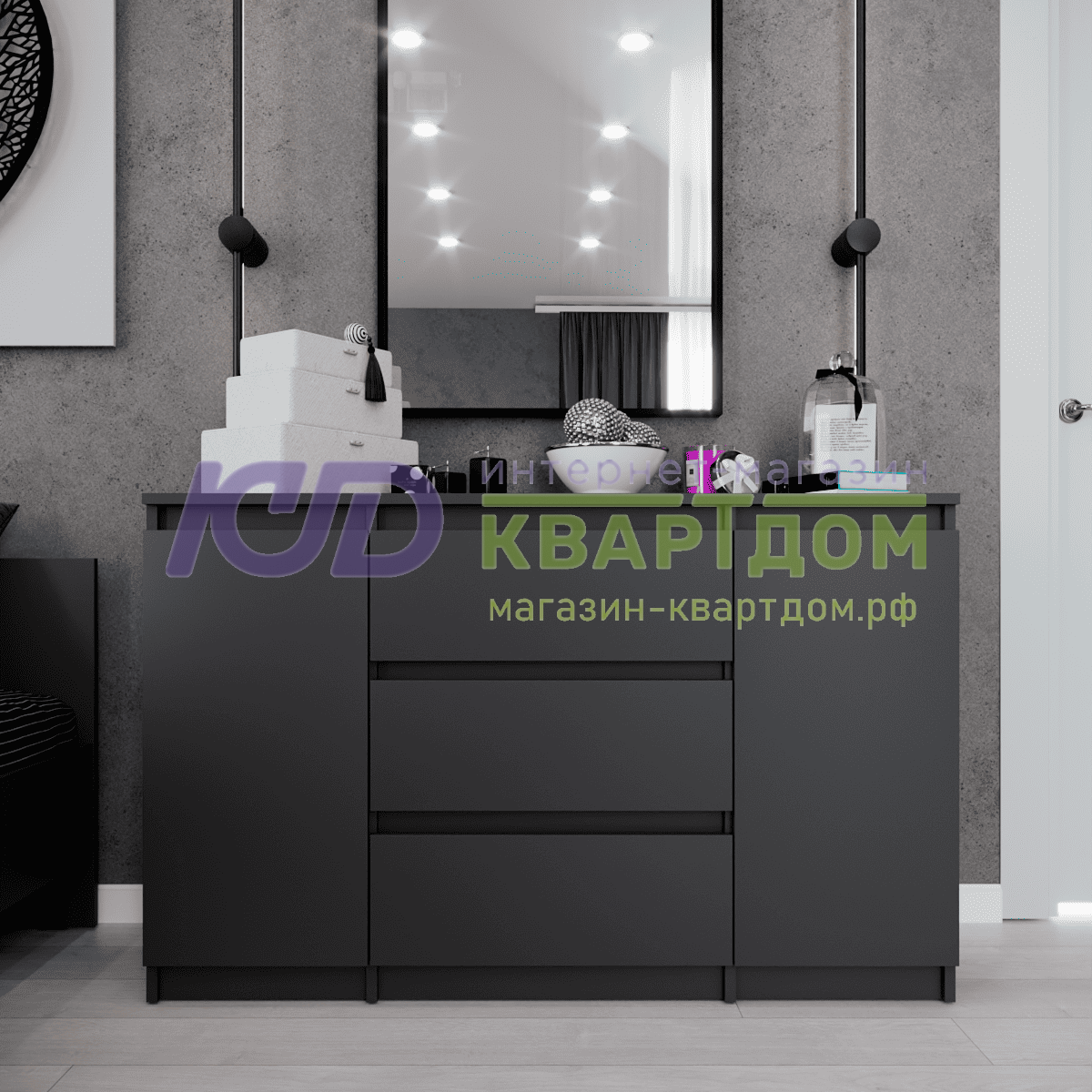 Комод двухстворчатый 3 ящика ДЕНВЕР (СВ) // серый графит,серый графит