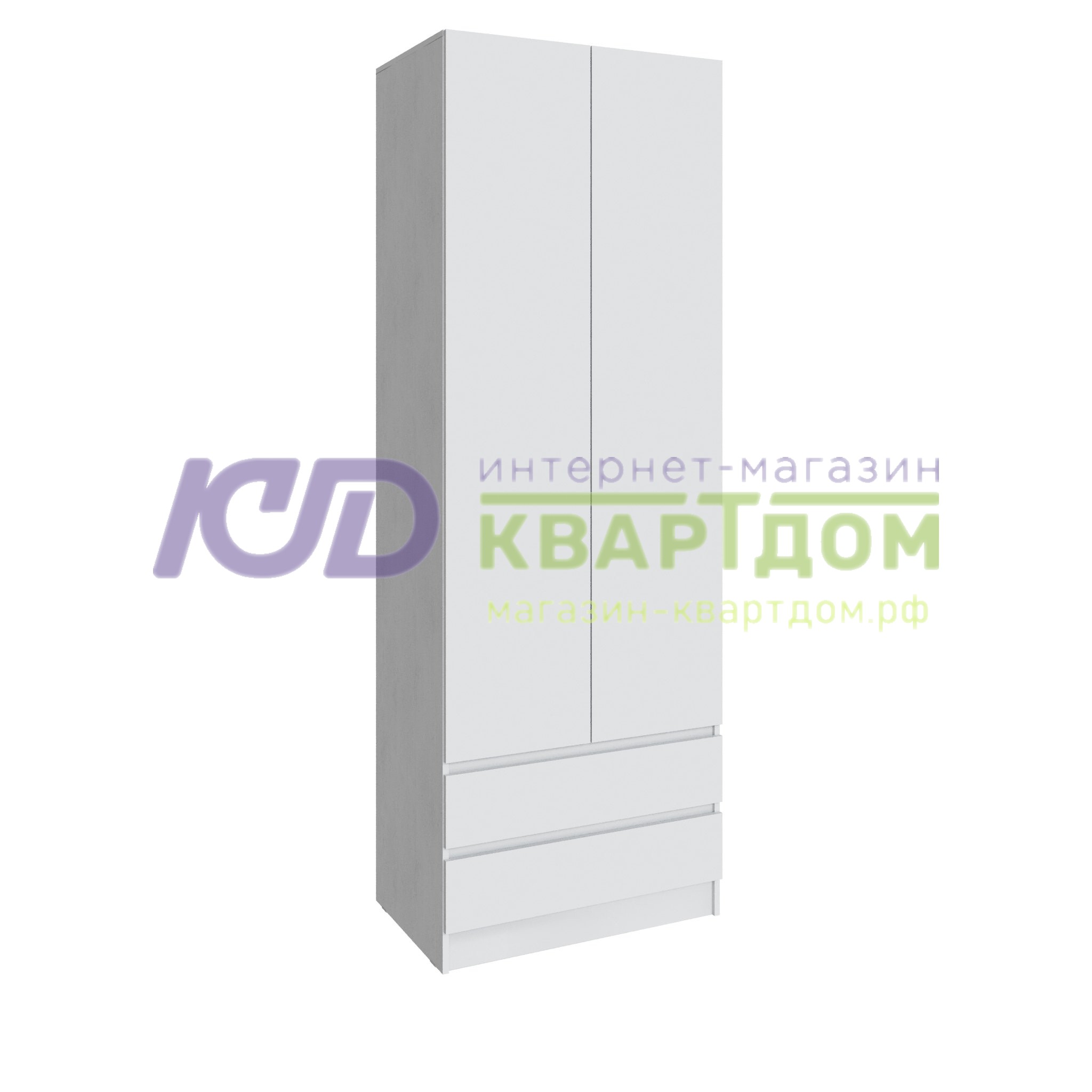 Шкаф двухстворчатый МАДРИД (0,8) с 2 ящиками без ручек без зеркала // белый