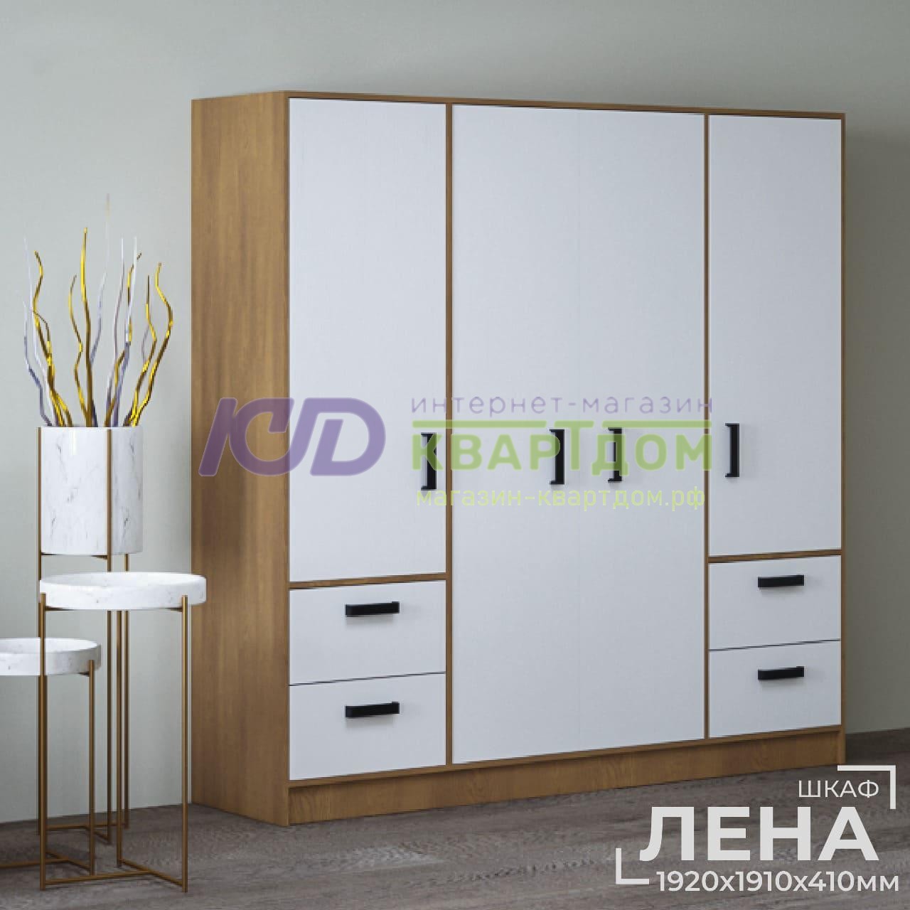 Шкаф четырехстворчатый ЛЕНА 4Ш4Я-1,92 // крафт золотой,белый